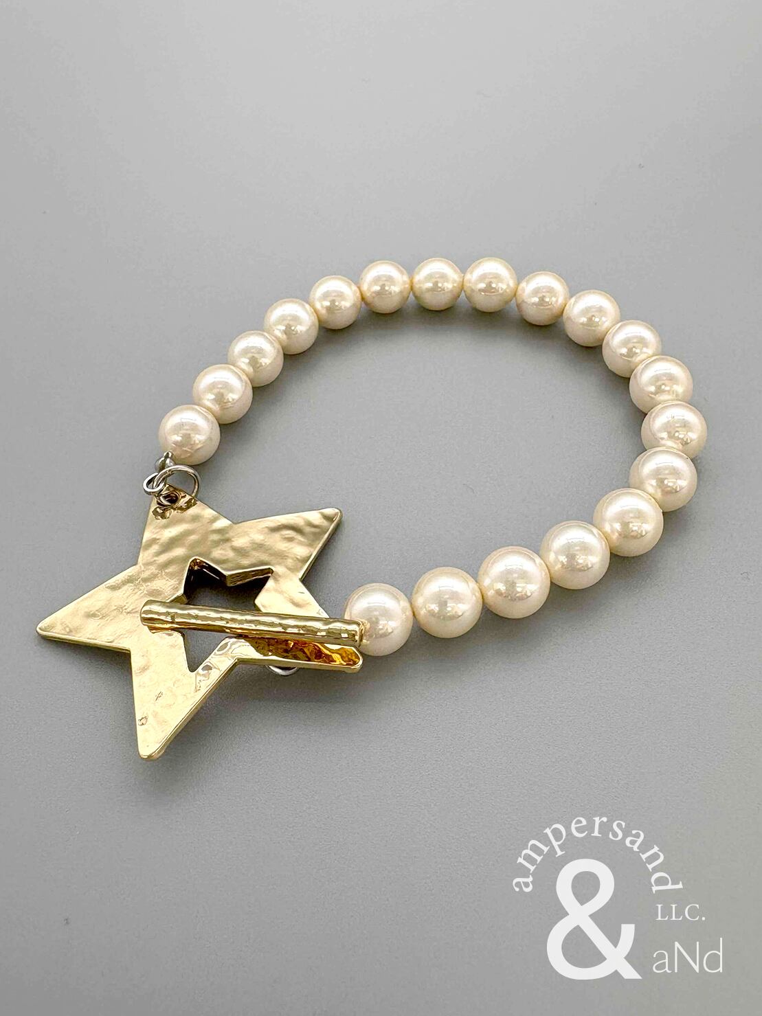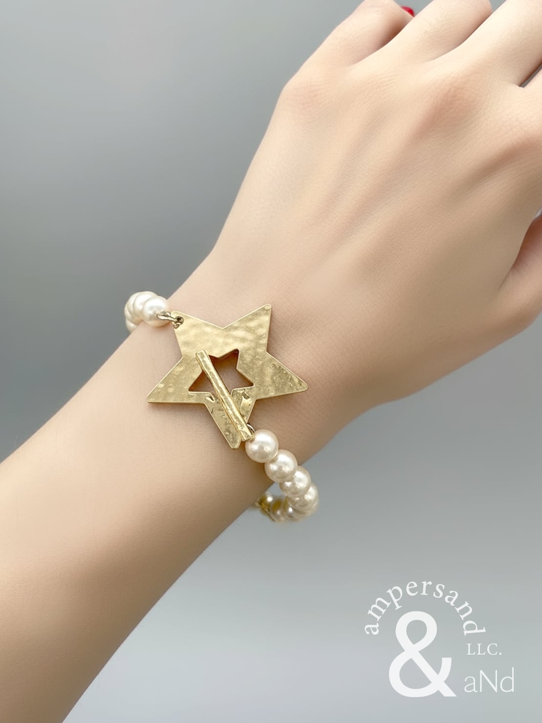 パールとゴールドのスターを組み合わせたハンドメイドブレスレット。