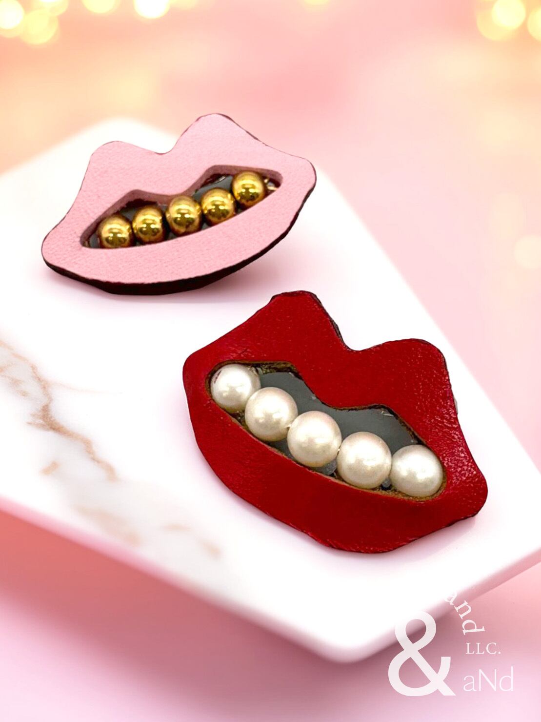 いつものコーディネートに遊び心をプラスできる、リップ型のレザーブローチです。